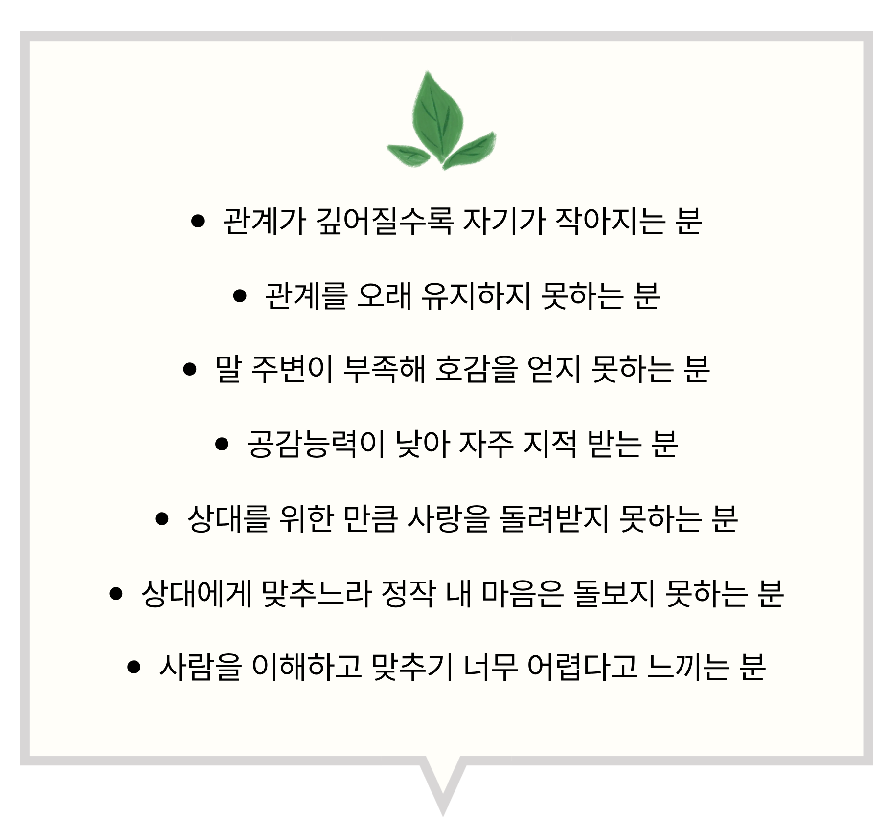 ✨ 프레임·심리상담·감정수업· 대화법·실습 등 다양한 커리큘럼으로 종합적 치유와 성장 |