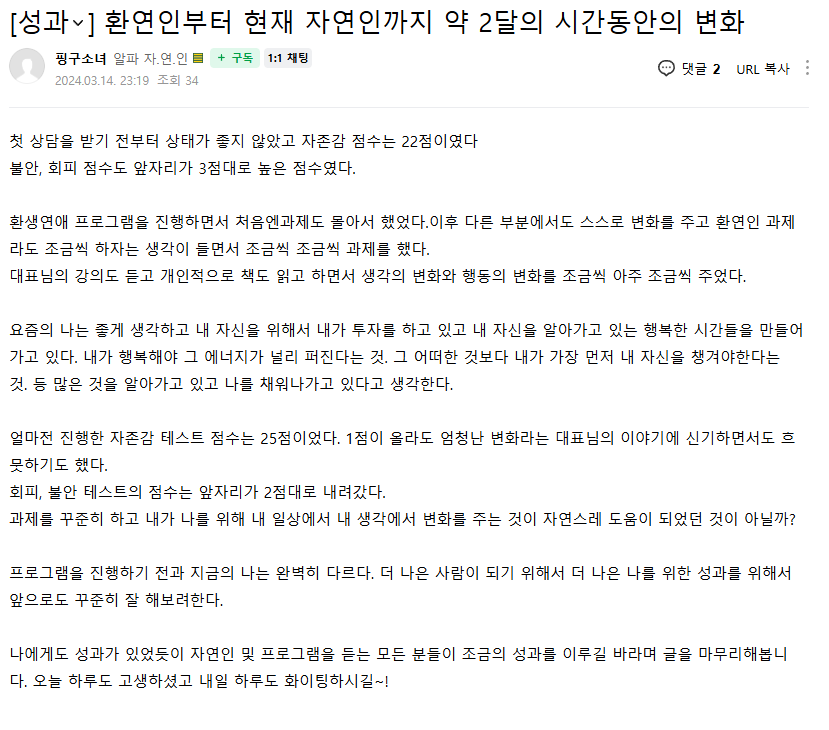 나도 모르게 방심한사이 커버린 자존감 (놓 님)